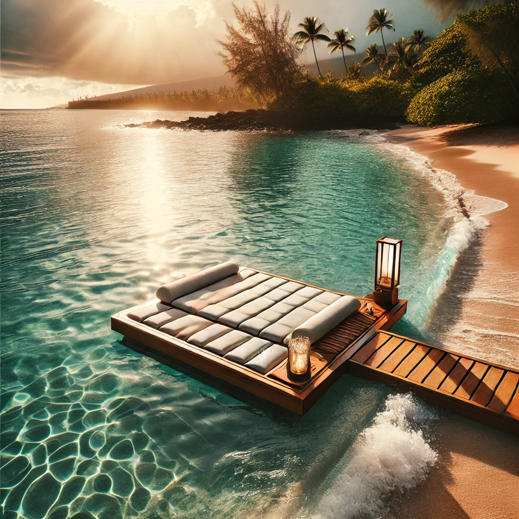 하와이의 라니카이 비치는 고요하고 맑은 바다로 유명합니다. 해변에서 편안한 마사지를 받으며 자연 속에서 힐링하는 특별한 시간을 보낼 수 있습니다.