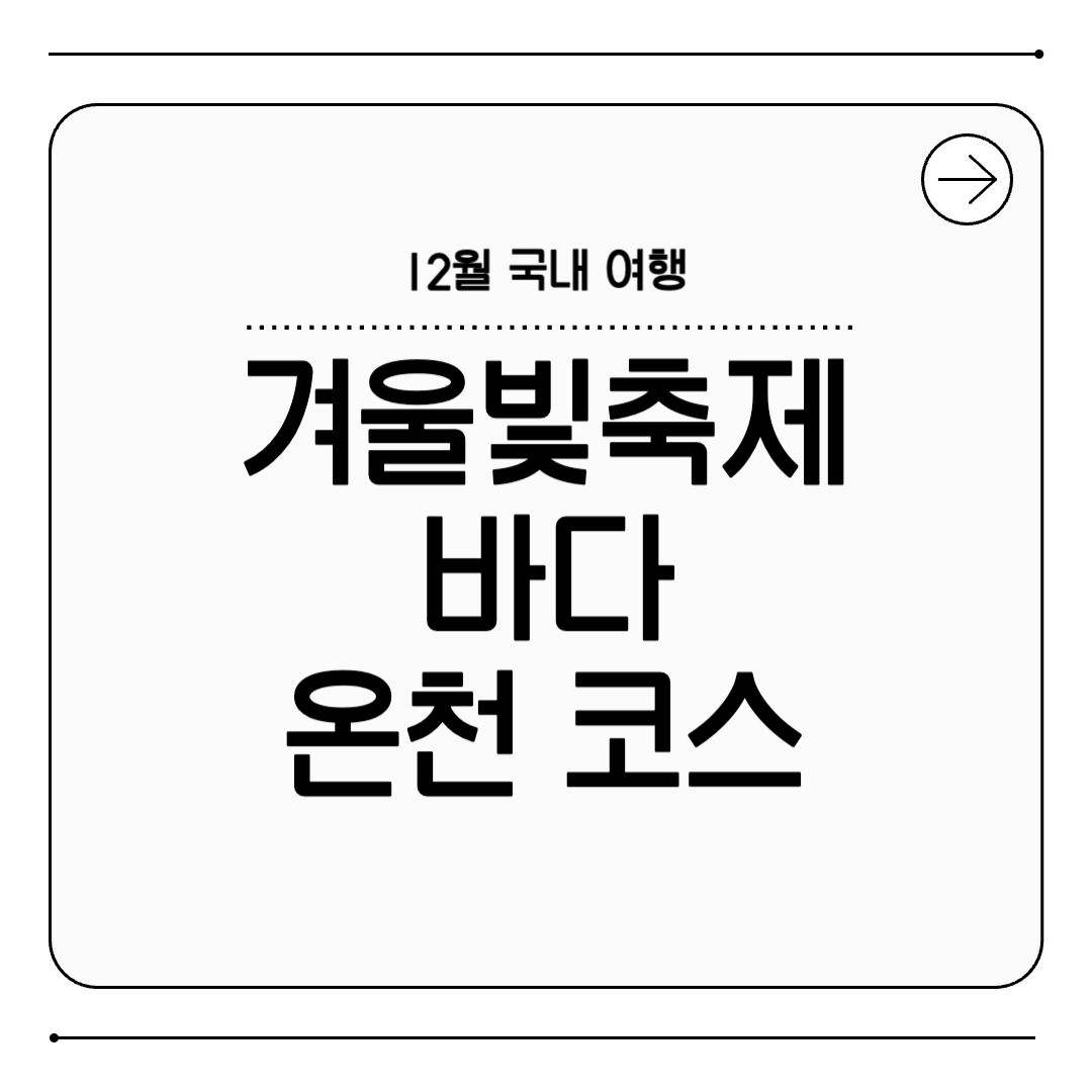 12월이 되면 국내 곳곳이 연말 분위기로 물들기 시작합니다. 차가운 공기와 반짝이는 조명, 따뜻한 온천과 겨울바다가 함께 어우러지는 시기라 어디로 떠나도 특별한 여행이 되죠. 겨울빛축제부터 힐링 온천, 감성 가득한 겨울바다까지, 12월에 떠나기 좋은 국내 여행지를 소개해 드릴게요!