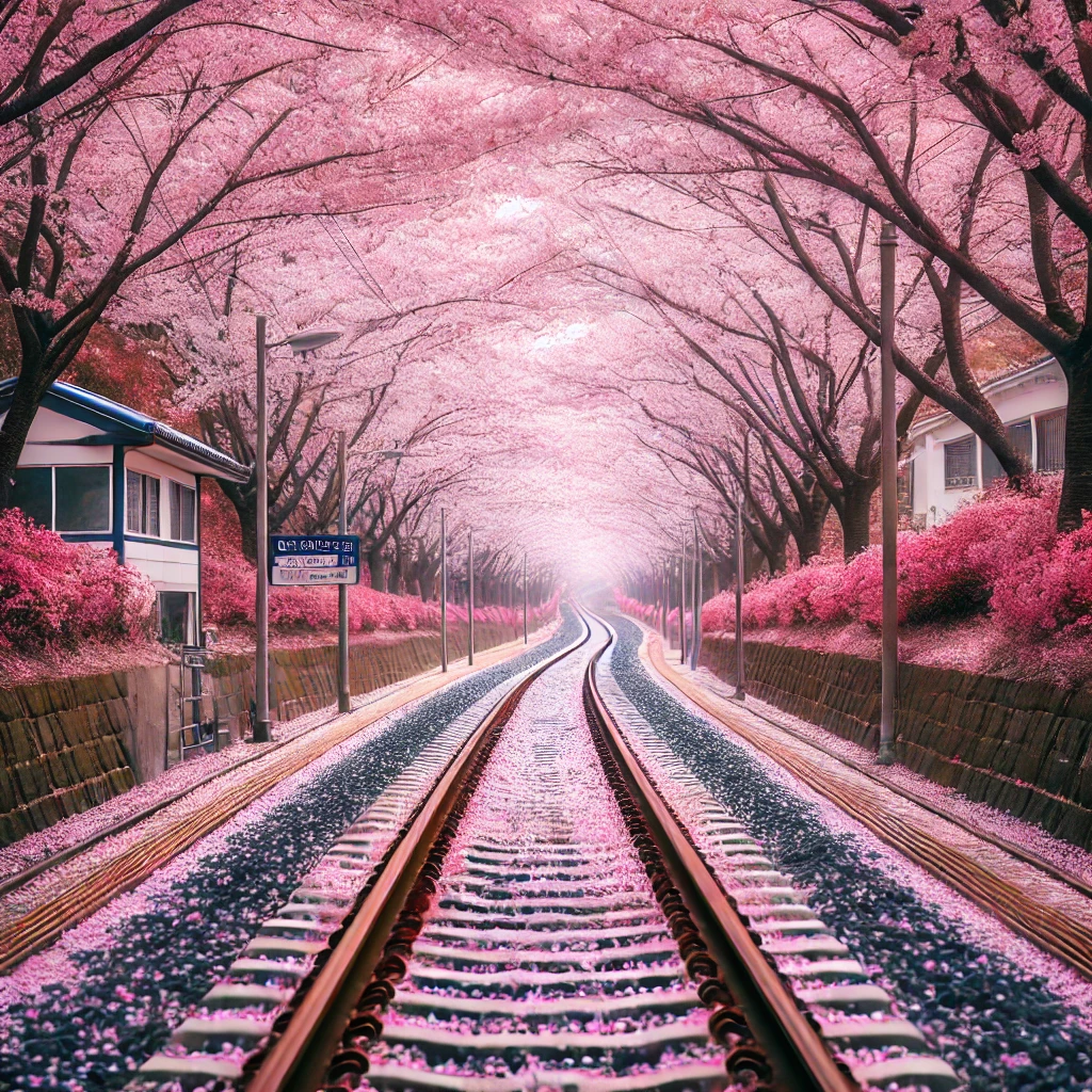 철길을 따라 벚꽃이 만개하는 곳으로, 마치 동화 속에 온 듯한 풍경을 연출해요.